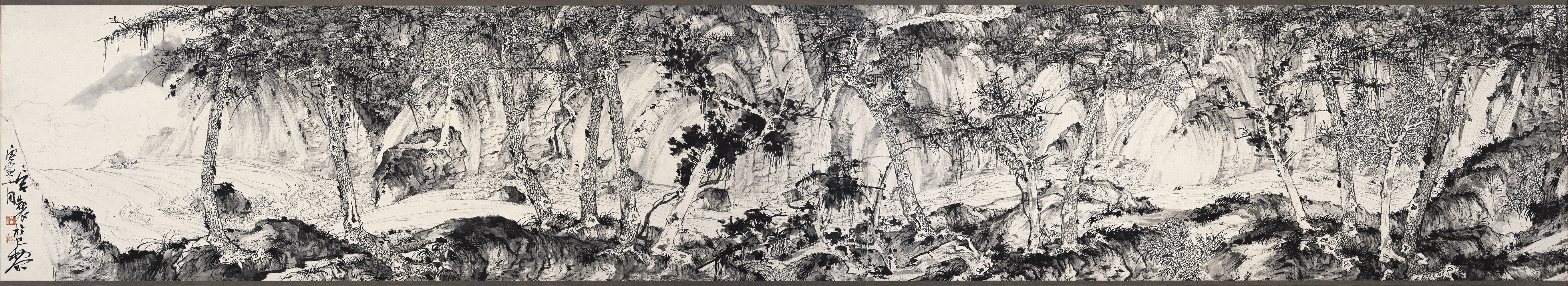 本展覽亮點是鄭力先生於二零一六年為杭州公望美術館的落成首展所創作的大手卷《順水圖》。該畫長達七米,是鄭力先生「反臨」元代大家黃公望的《富春山居圖》。所謂「反臨」,乃是把《富春山居圖》溯江而上的景色掉轉, 改為順流而下的江景。在《順水圖》中,鄭力先生更把被燒缺的《富春山居圖》前段《剩山圖》與後段「無用師卷」承接完整,前後連接無間,可見其情性修養與筆墨功架。