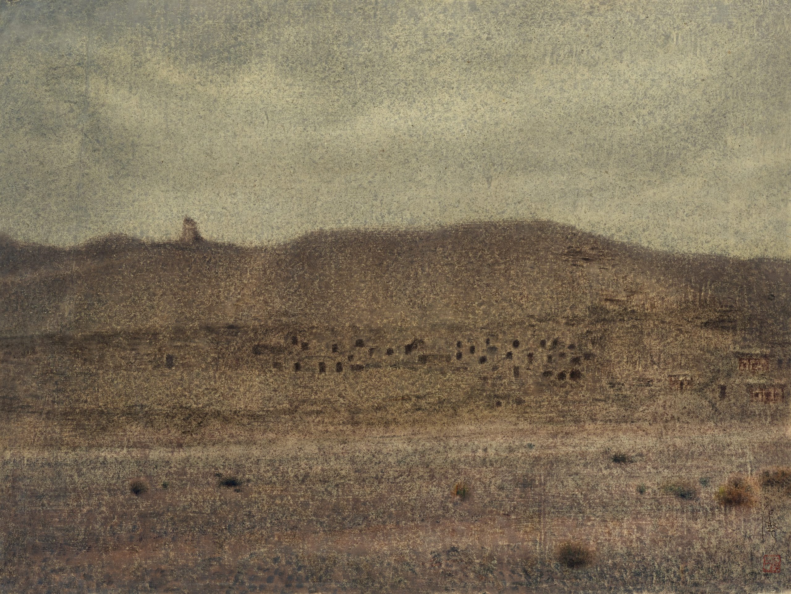 One enters Qiu Shihua’s paintings as if slipping into the morning mist. Whiteness dominates, shifting in a variety of shades. By pushing the contrast of form and colour to an absolute minimum, even to the point where it can hardly be differentiated, Qiu has changed the act of viewing from an active solicitation to an alert envisioning. Yet, because his faintly painted landscapes cannot be discerned at a glance, it is necessary first to relax the mind before the image in the painting slowly floats into view: in this way a meditative state becomes the prerequisite condition for viewing the work. Gradually the eyes make out the view: the vague fold of trees, and fainter woods afar. Eventually one seems to see, or sense, every detail, down to the play of light on the tufts of grassy fodder. In many of Qiu’s paintings the qualities of breath-rhythm (qiyun) and inner vitality (lingdong) are palpable. They give the impression of entering the world at a moment of fullness when its mysteries are about to be revealed: light at daybreak, first darkness at dusk, or the moment when sound breaks the fullness of silence.