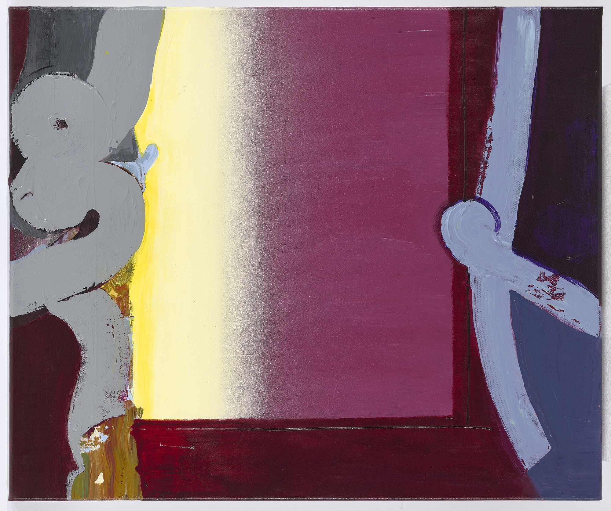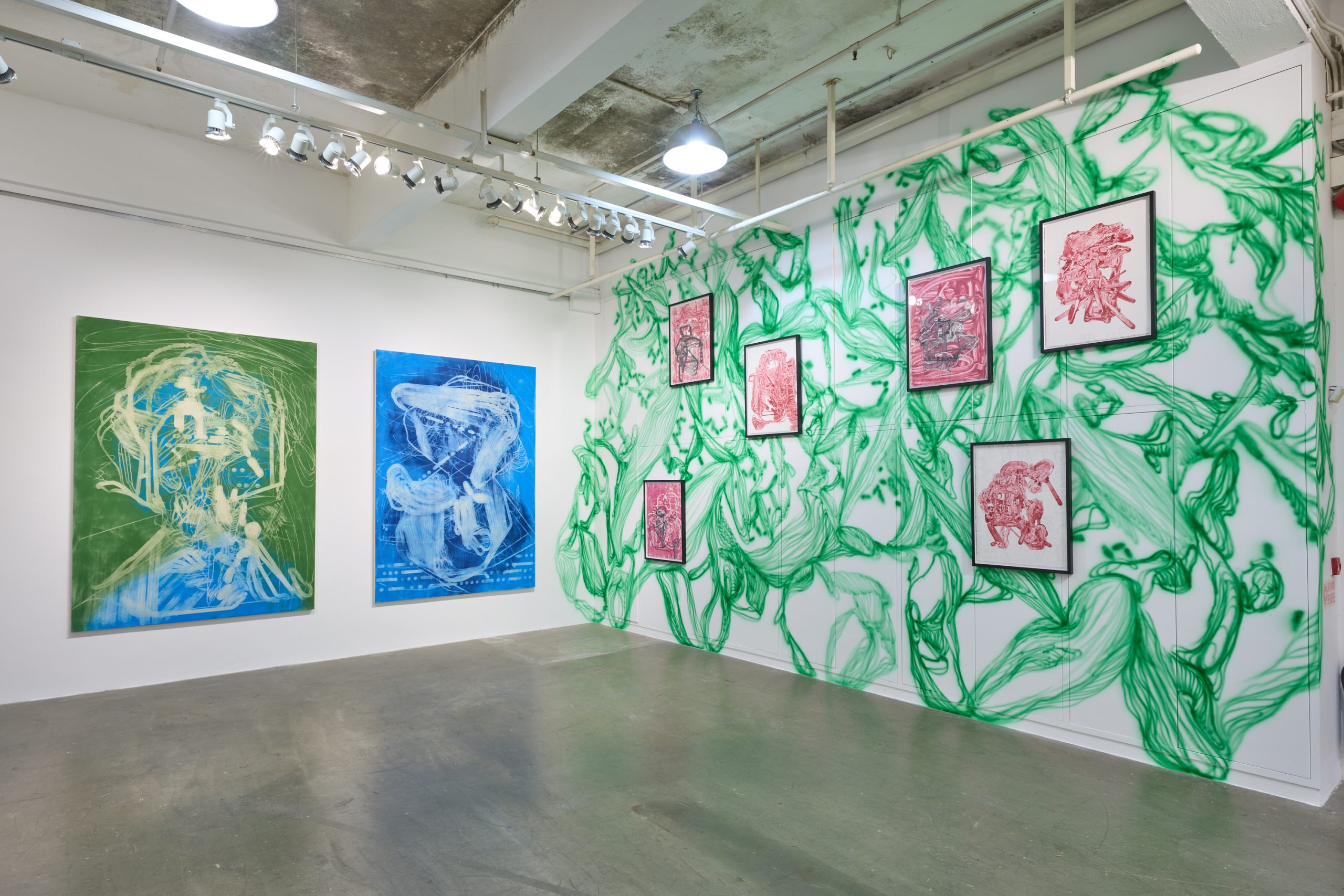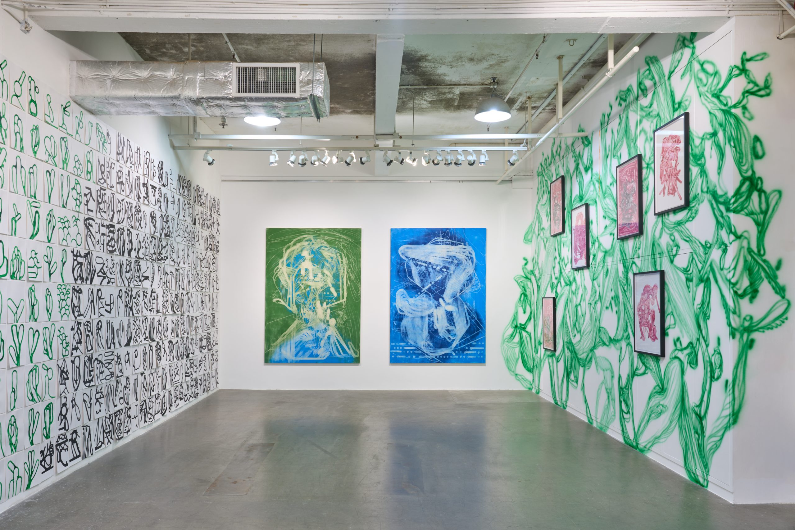 The paintings of Christian Schwarzwald and Kurt Chan take the flesh of the word, its visual aspect, as the subject of their playful imagination. They are both interested in how the written word evokes particular realities; and how, as a graphic form, it inadvertently spills over into channels of unintended meanings and visions. With the two artists coming together in one exhibition, their separate languages allow us to see with multiple pairs of eyes.