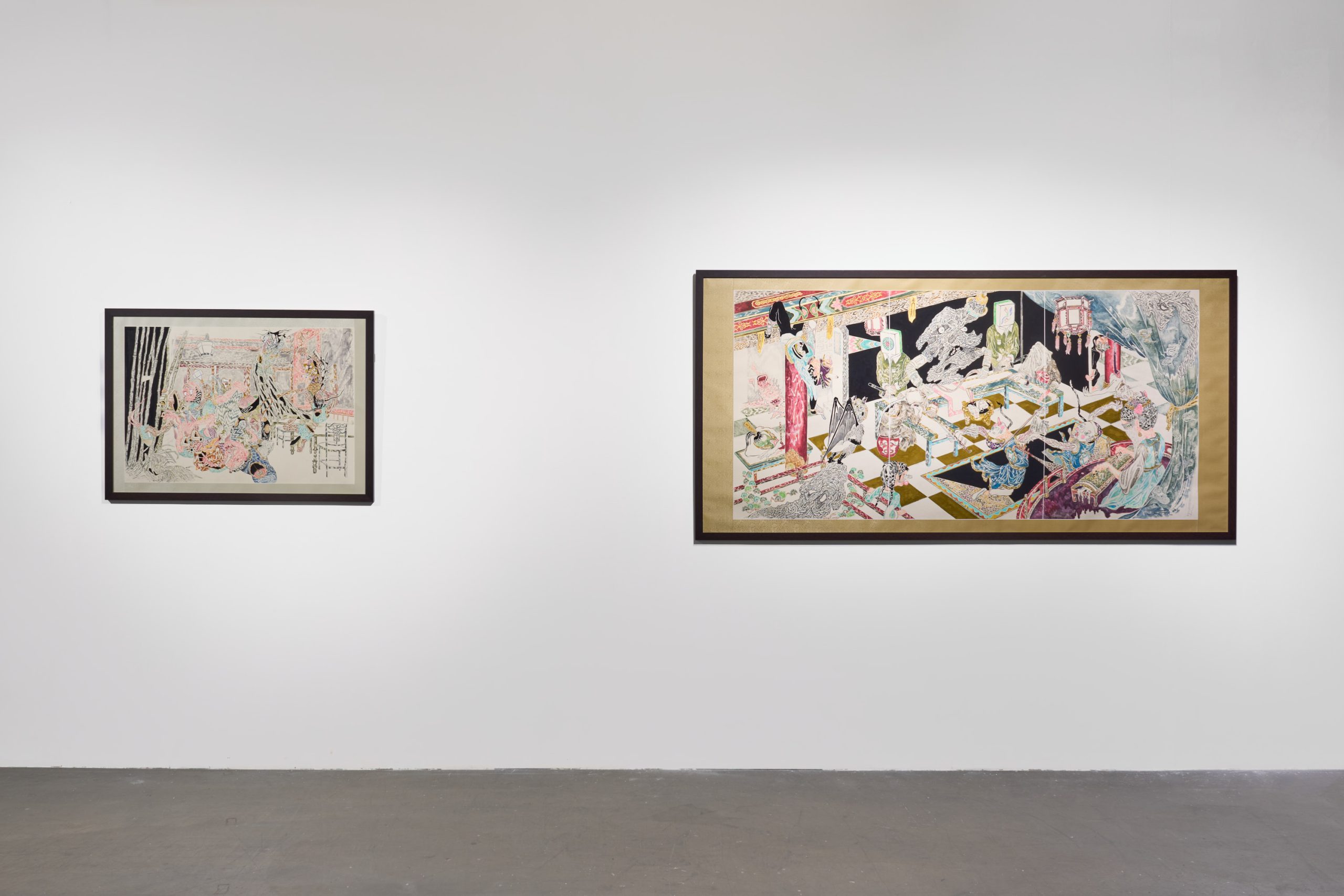 Paint Pigment and Ink on Mulberry Paper Mounted on Silk