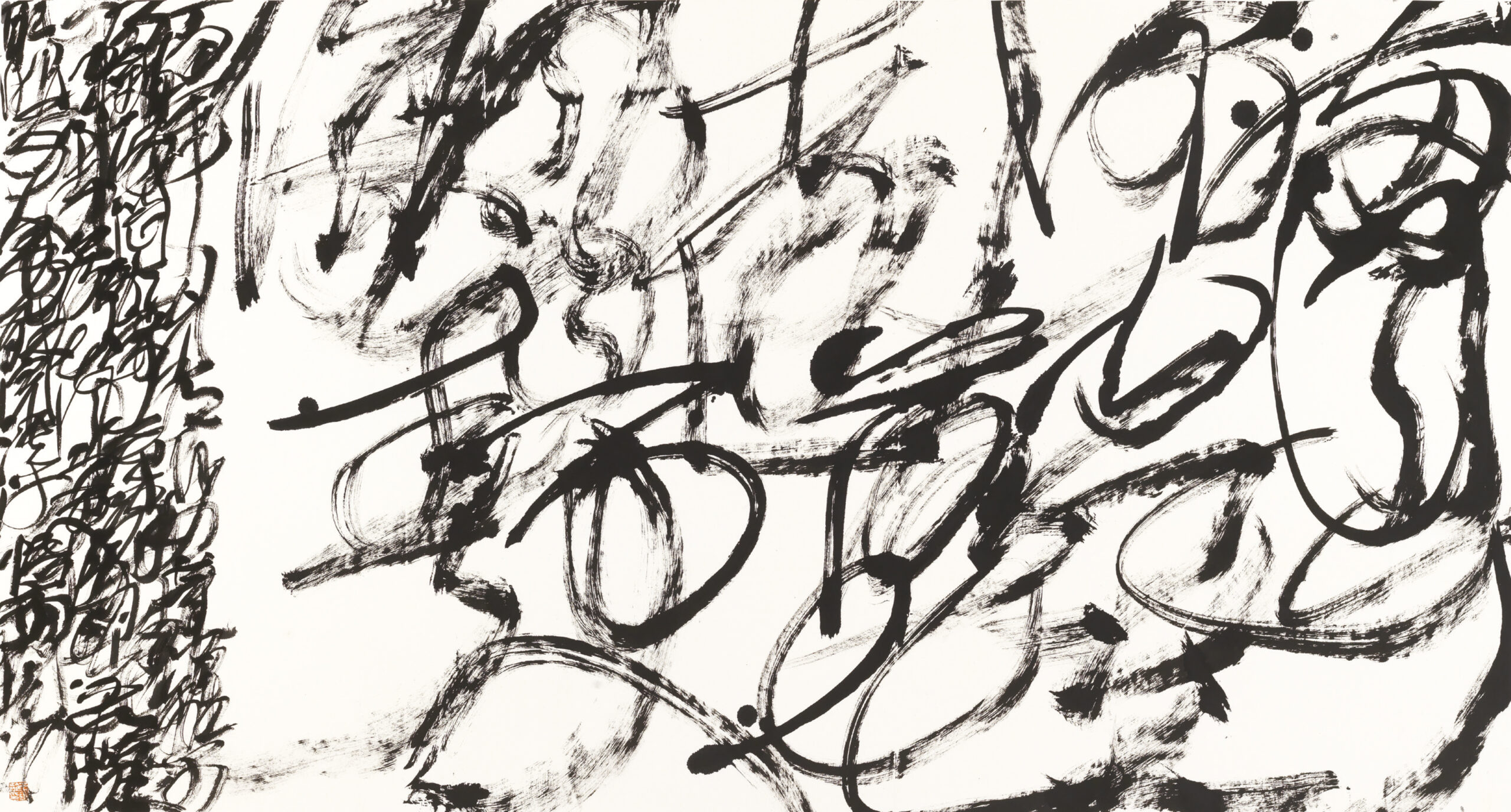 Wang Dongling 王冬齡 (b.1945) YAN Shu, ‘Sandy Creek Washers’, Entangled Script《晏殊「浣溪沙」亂書》2016 Ink on Paper 96 x 178 cm