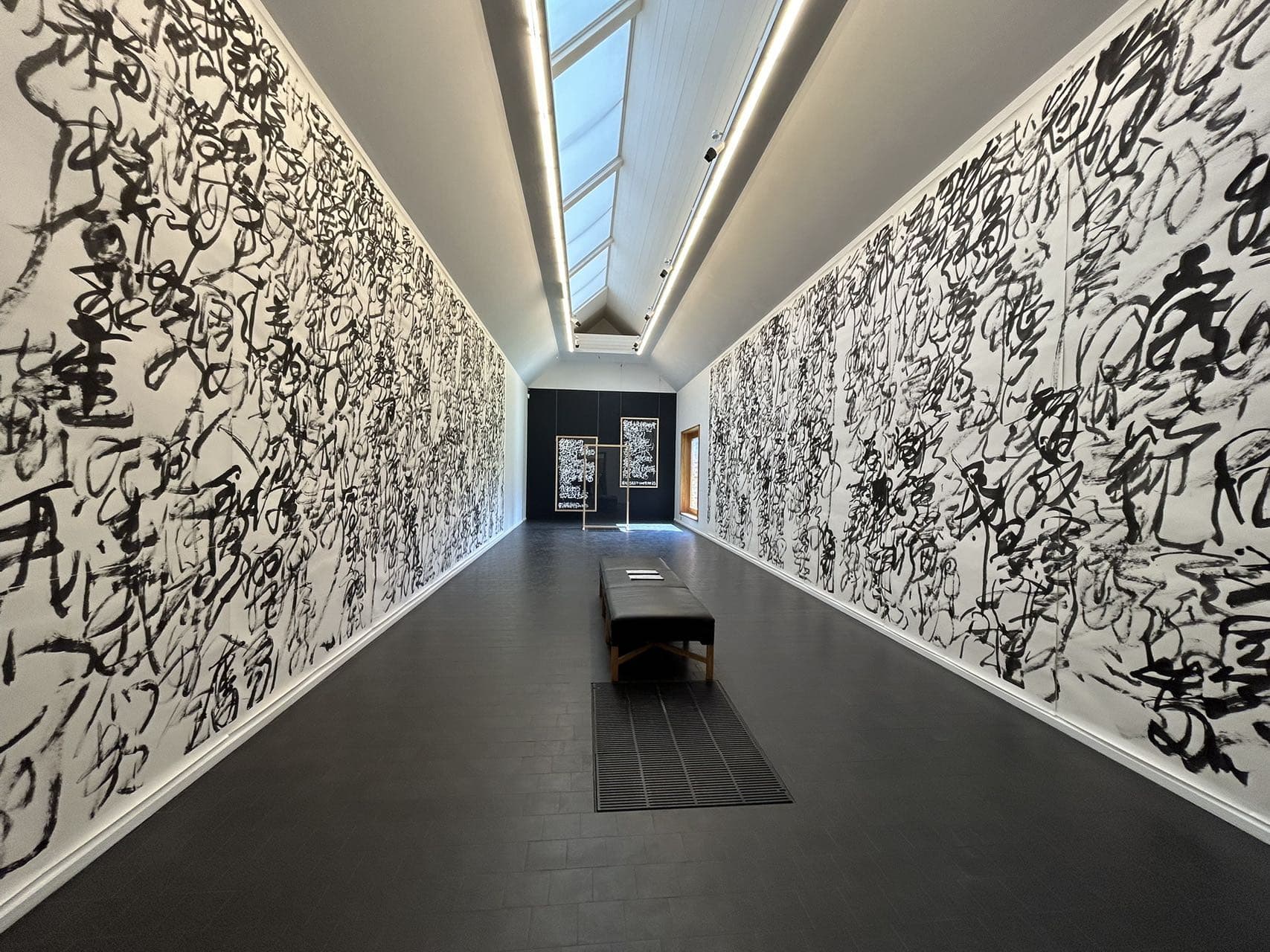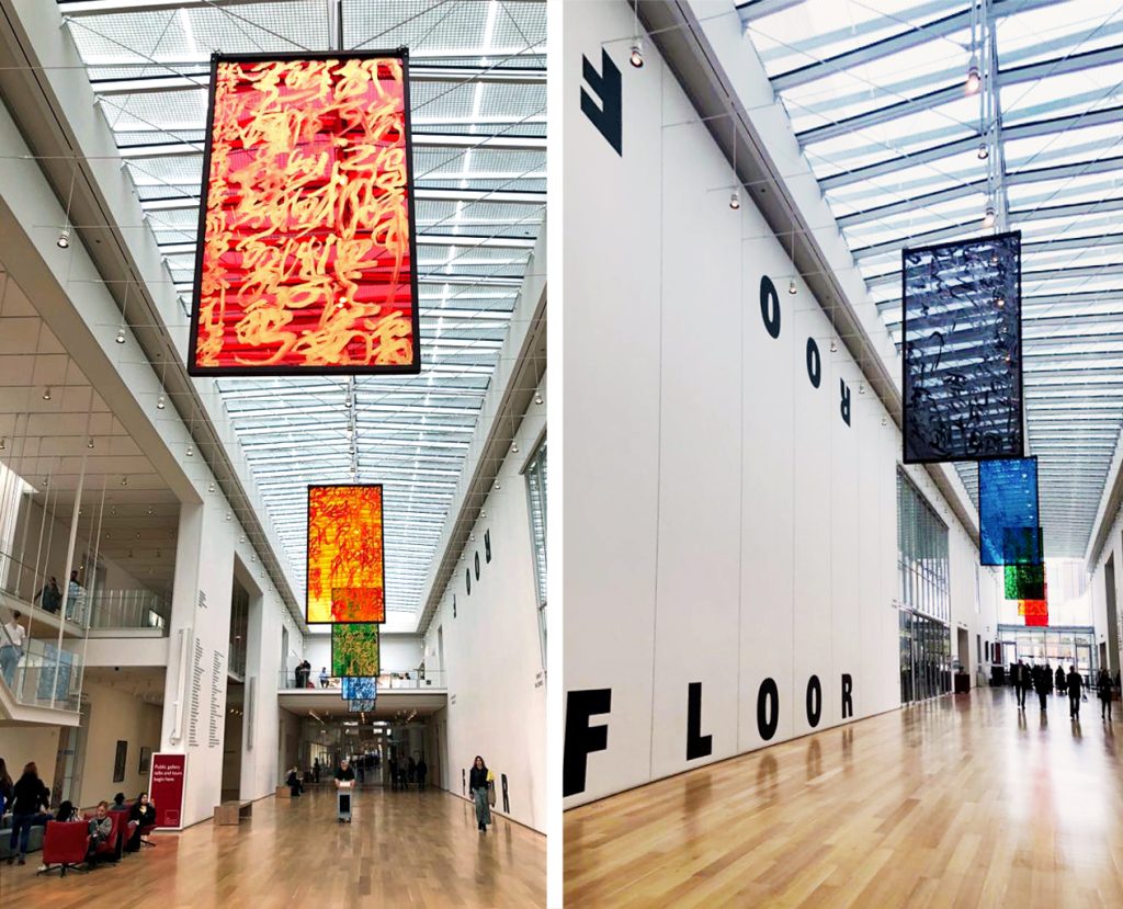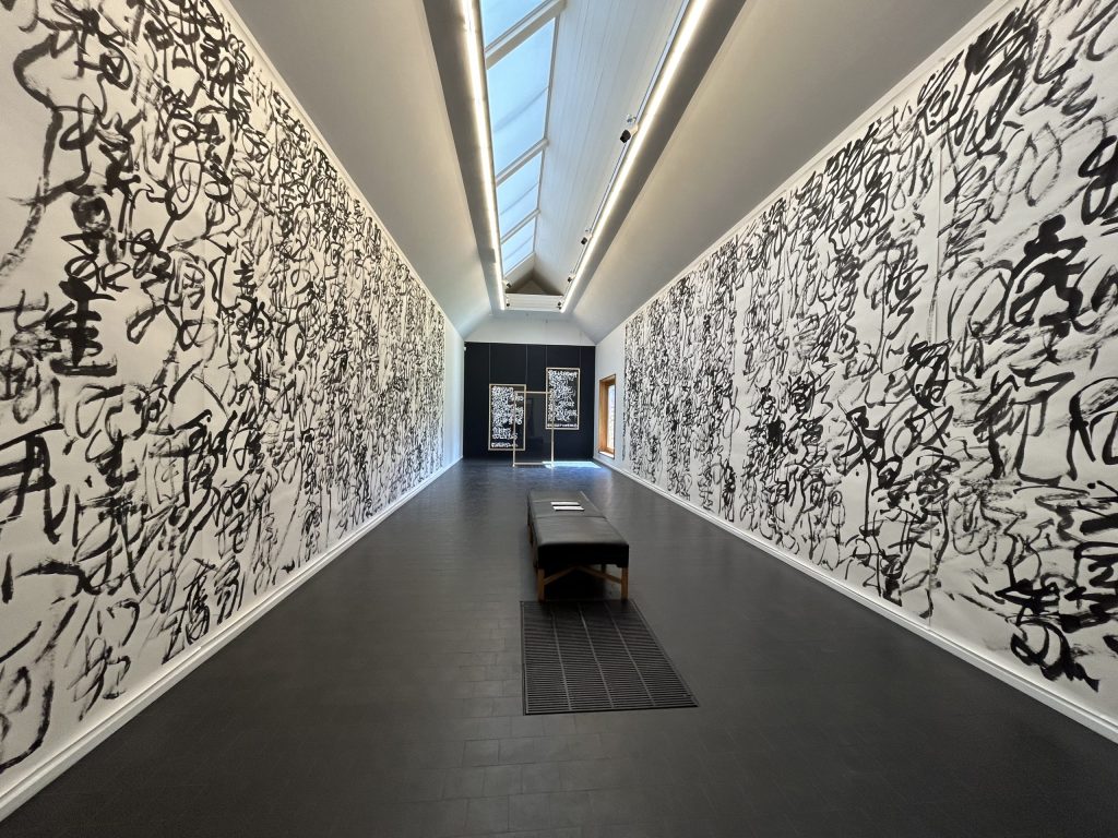 「亞克力亂書彩屏」同樣是本展覽的亮點,此類作品經常在世界各地大型美術館展示。藝術家在彩色透明板材上書寫,結合燈光在空間中展示,把書法的線條、肌理、韻律和速度轉化為一個可「游」的審美場域,觀者可身臨其境感受「亂書」的藝術張力,體驗藝術家把書寫擴展到公共空間所帶來的沖擊。
