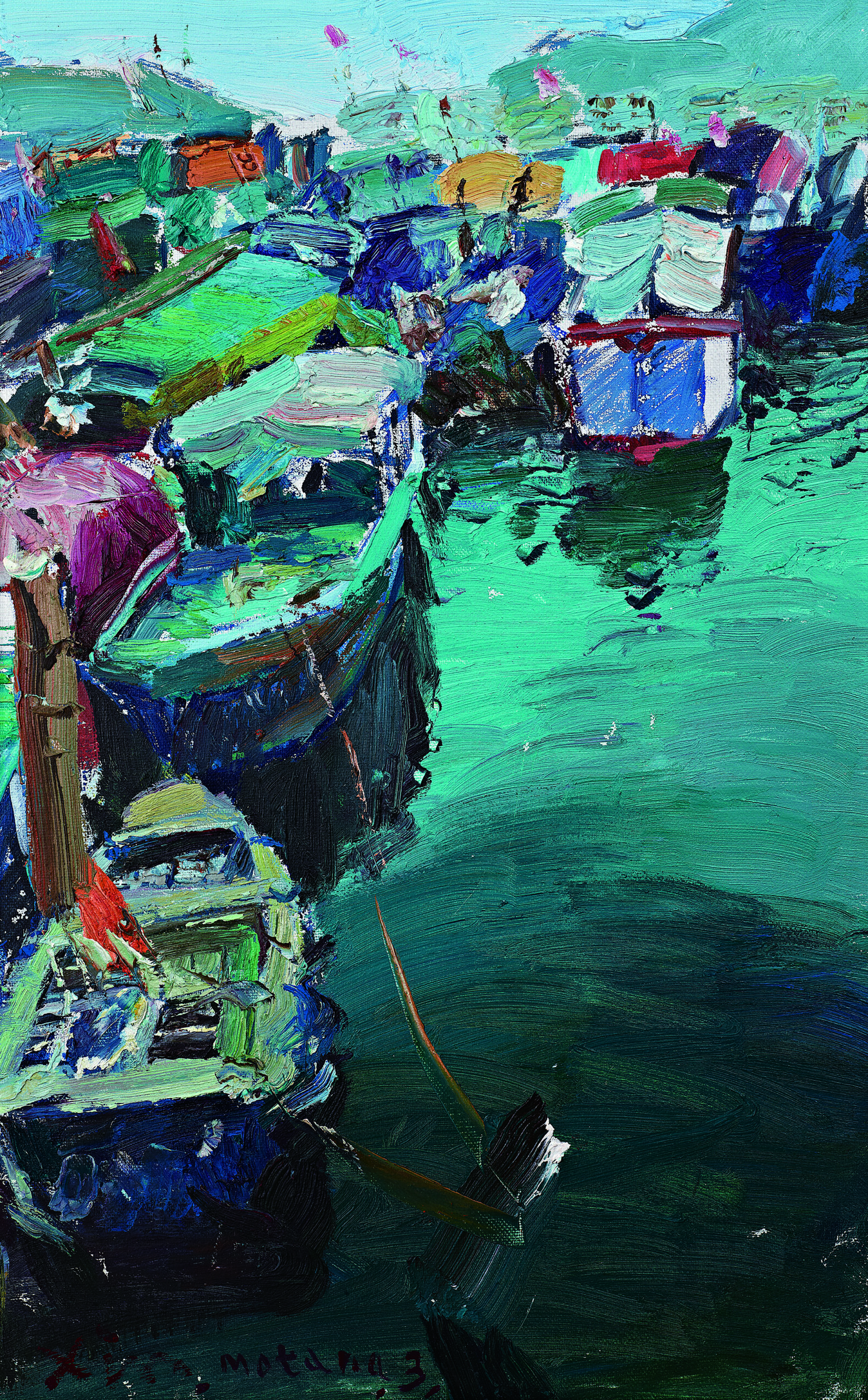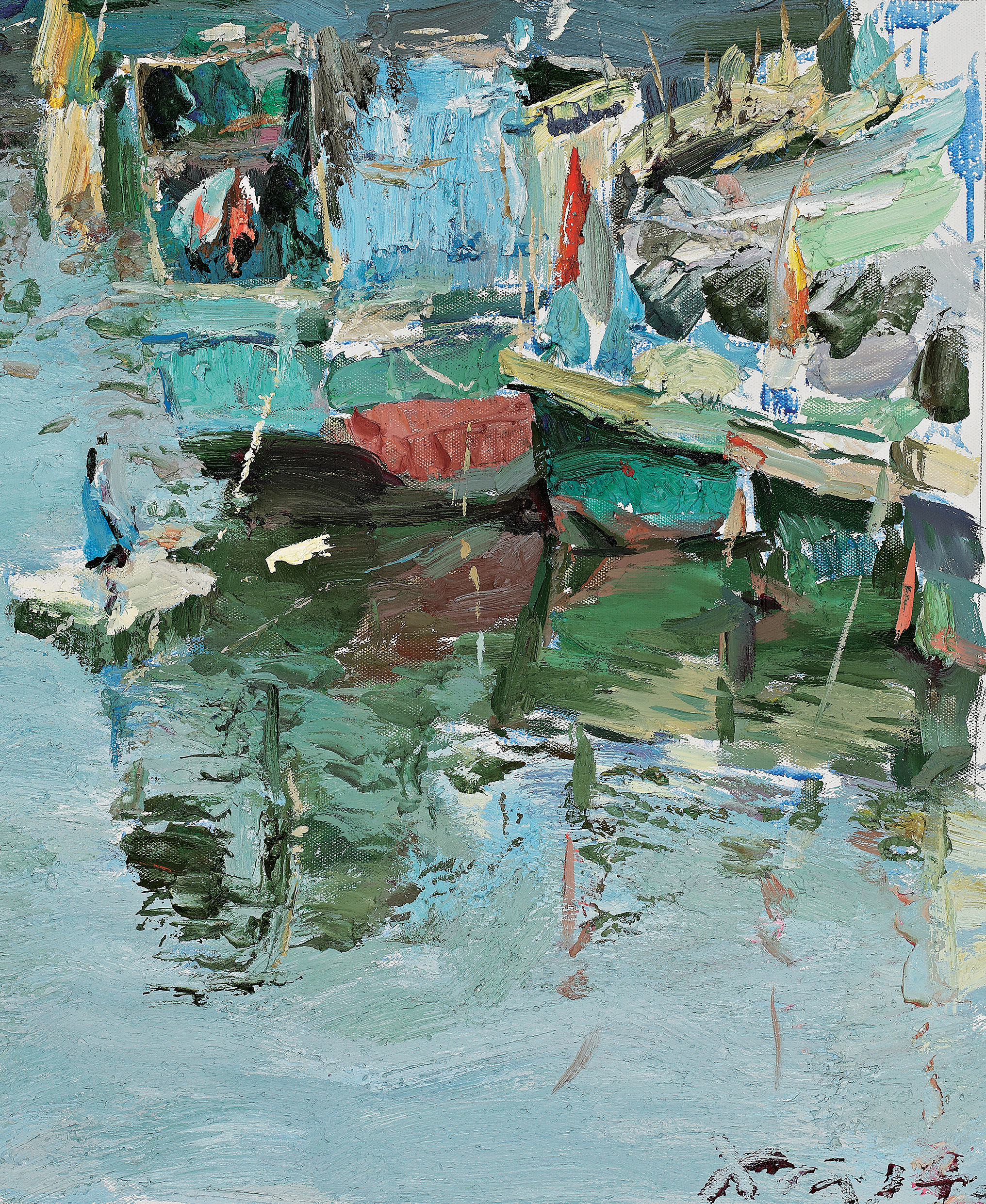 在中國油畫家中諶先生以用色豐富見稱,由於他一直究心風景畫,對於光影與色彩的變化尤其得心應手。形體的色彩和筆法的構成互相融合,以致冷暖陰陽柔堅都在色彩和行筆中同時表達。諶先生的繪畫手法早已打破了形和色之分,也不以筆法別於物象的體積和內蘊,而把畫意藏於描繪和技法之中。