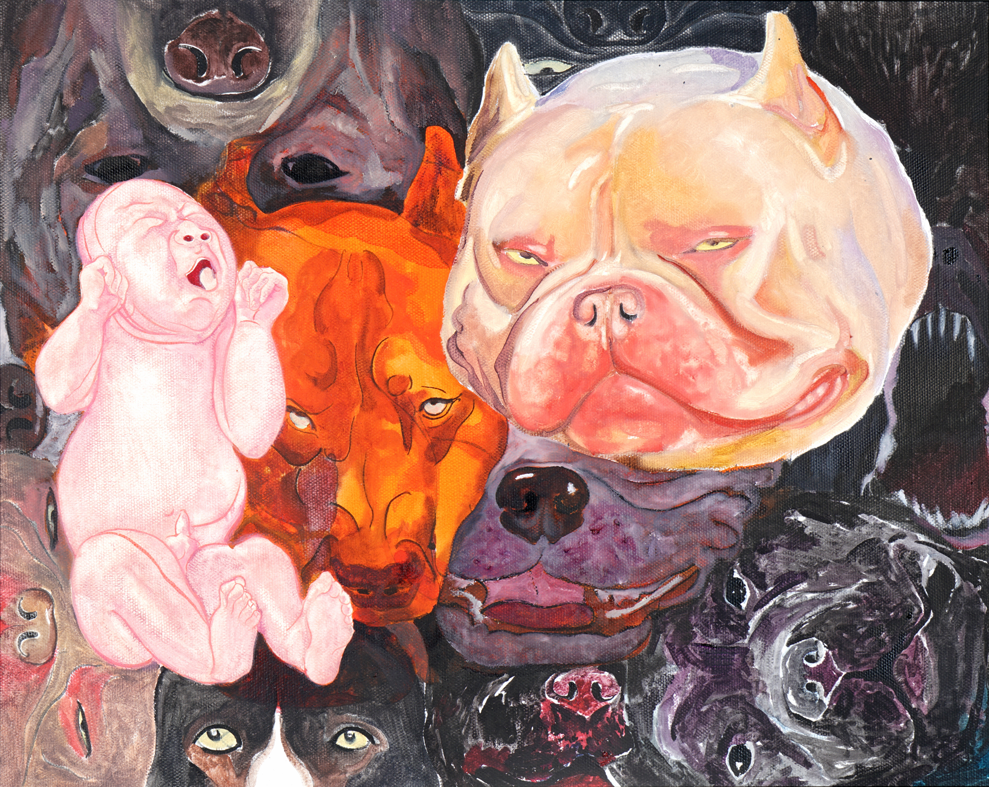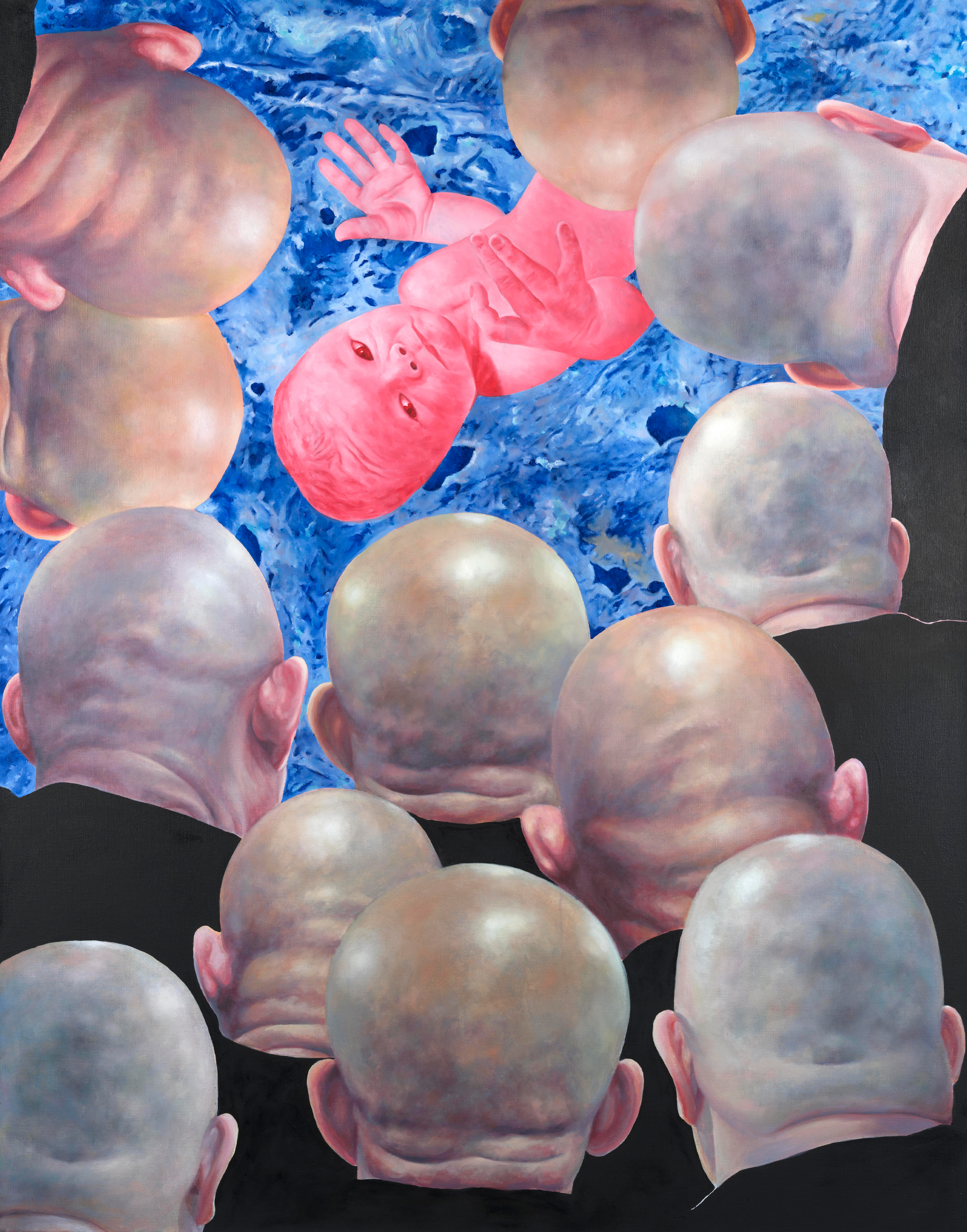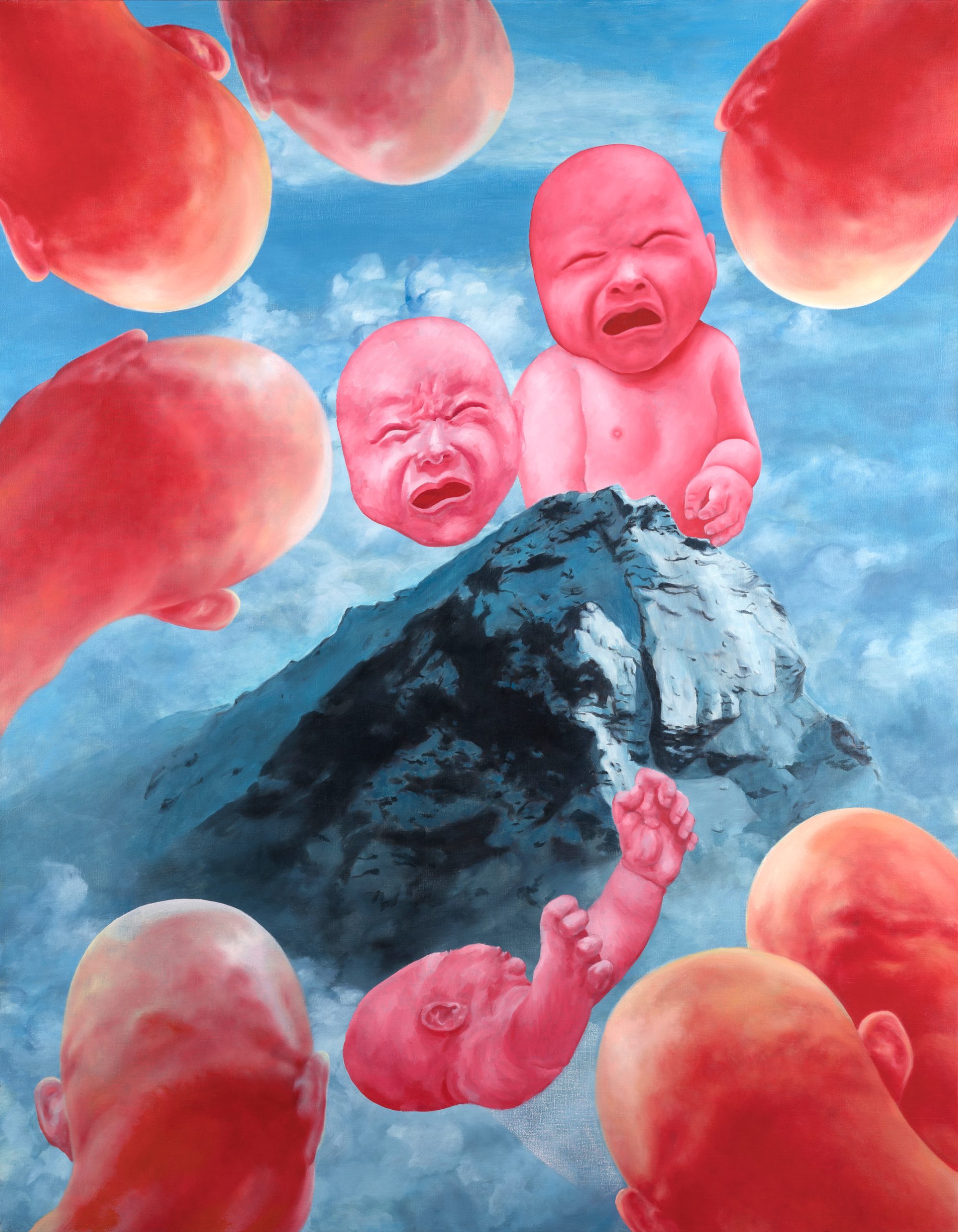 集體共識和個人至上這兩種社會的模式,都有賴各自構成社會共識的條件,而且必須保持合理的彈性尺度,否則,極端的集體主義與極端的個人主義同樣不是好過的時代。 所以「人間世」這種駭人聽聞的藝術想像有如警世危言,所反映的是時代轉型、共識瓦解之下被藝術誇張的心理寫照。初生嬰兒被四週虎視眈眈的目光敵視,生命前景著實堪虞。社會對未來的願景本應是為了世代傳遞所建設,可是初生嬰兒象徵的「未來」卻被今天的生存需求所吞噬。這是在生產力至上、消費為資本運轉服務的時代的真實陰影。現代人正在毫無制約地消耗未來一兩代人的資源。在畫家的視覺想像中,吞噬未來的意象構成了人食人的世代。