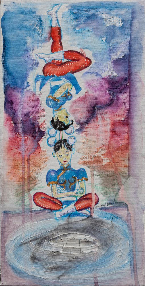馮夢波把想像的及借用的圖像重組並置,極具意味。大眾熟悉的人物,如電玩角色 《街頭霸王》中的春麗,以及功夫明星李小龍居然與徐悲鴻的壯馬同時出現在庸俗的光柵立體風景照上。馮夢波以這些玩世不恭的戲謔畫面,重新審視他年輕時那個對視覺充滿幻想的年代。巾幗英雄春麗標誌著他的成長及青春年代的回憶。這些回憶既是社會的也是個人的,籠罩著對文革的朦朧印象。