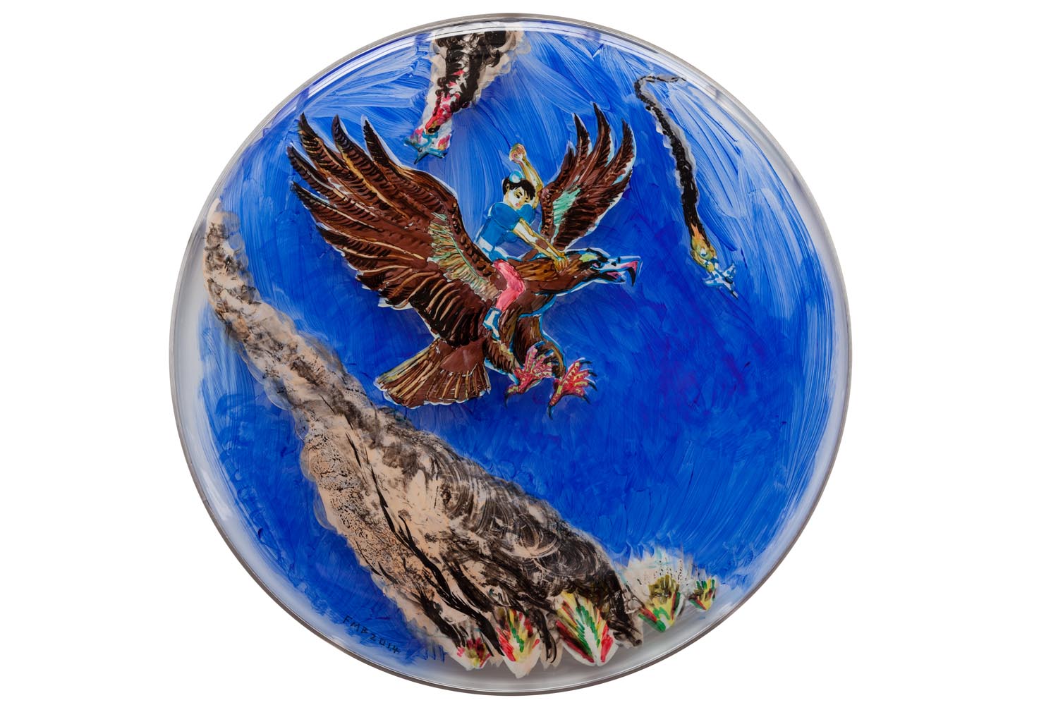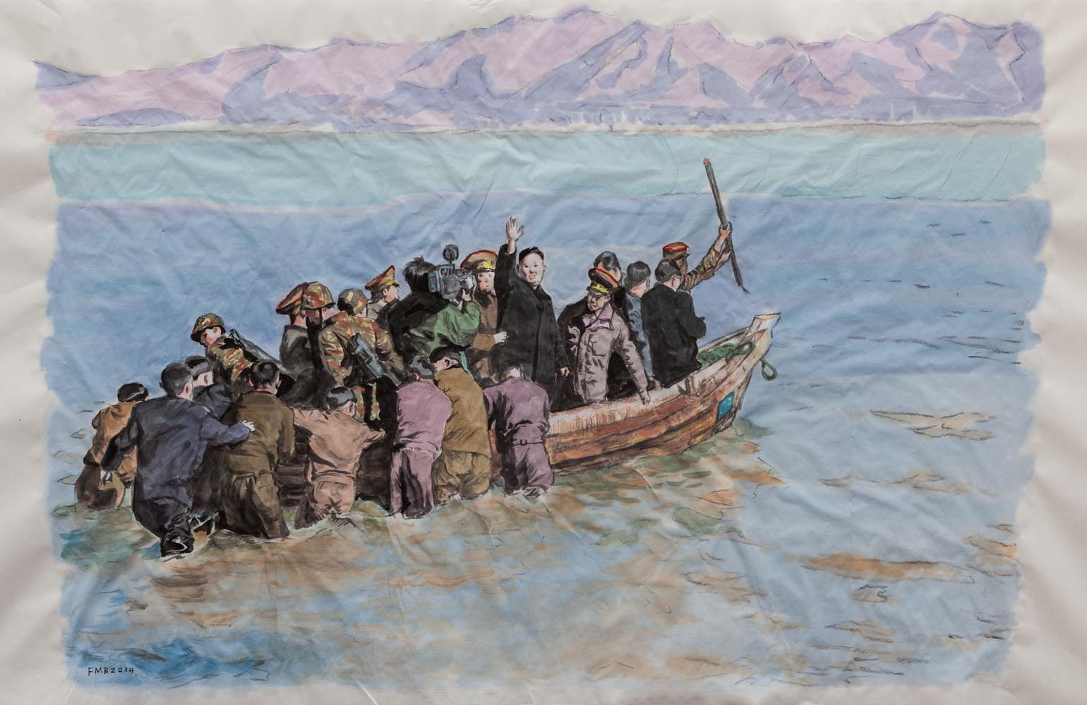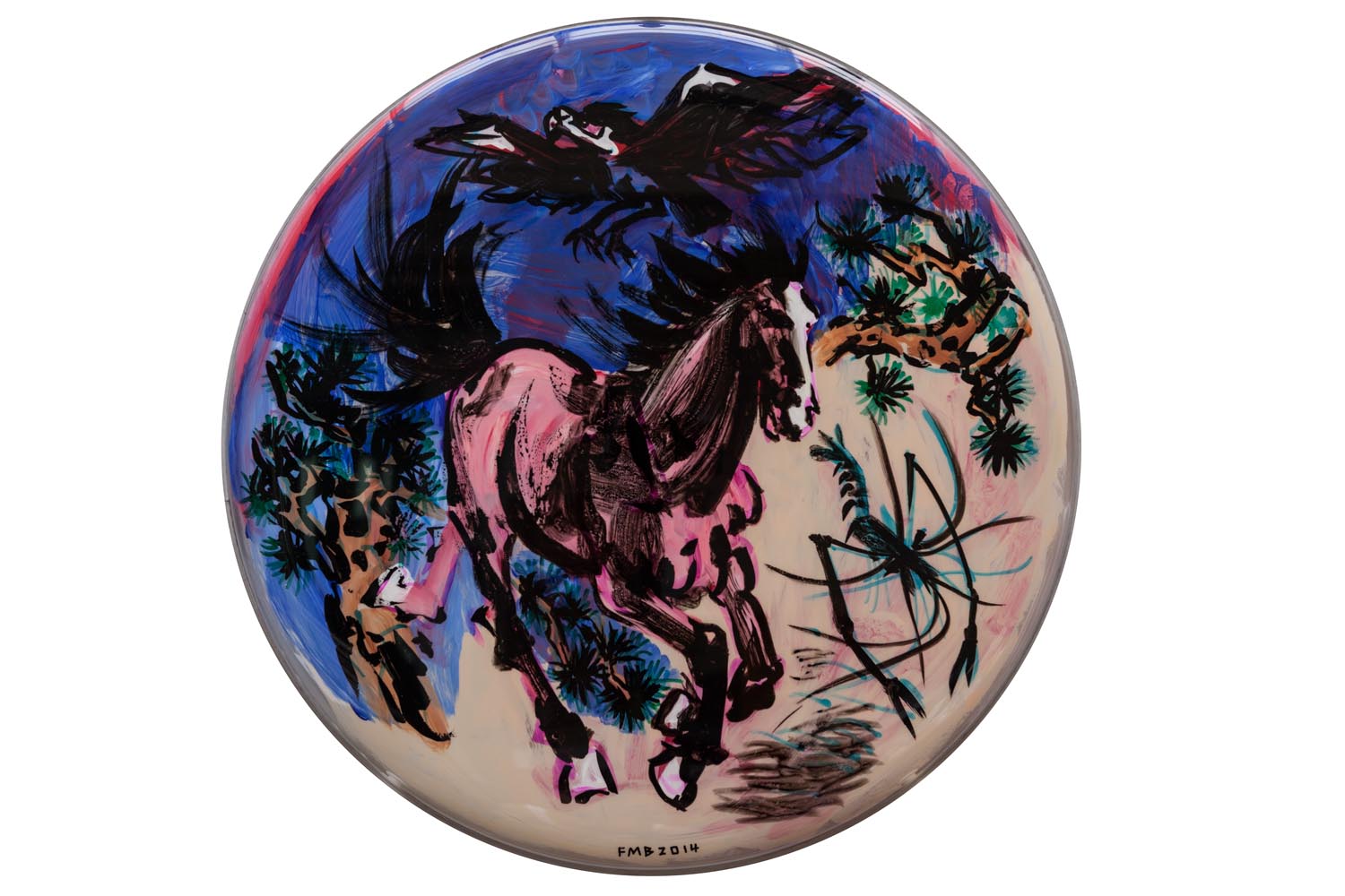 馮夢波一直以政治波普及動電作為創作題材。本展覽首次公開馮夢波過去兩年的最新“後波普”繪畫。這批新穎刺激的作品除了油畫與水墨,還大量使用鼓皮、立體光柵照片等綜合材料,打破波普與通俗媒介的界線。這些“後波普”繪畫五顏六色、詼諧幽默、充滿「惡」趣味。馮夢波從通俗媒介中提取豐富的語彙,政治宣傳海報、流行電影、卡通動漫及電玩遊戲都被他利用起來。然而今天,傳統藝術元素像徐悲鴻的馬、齊白石的蝦及李苦蟬的鷹也不知不覺地被挪移到通俗媒介的境地之中。這些現象都是馮夢波的創作靈感。